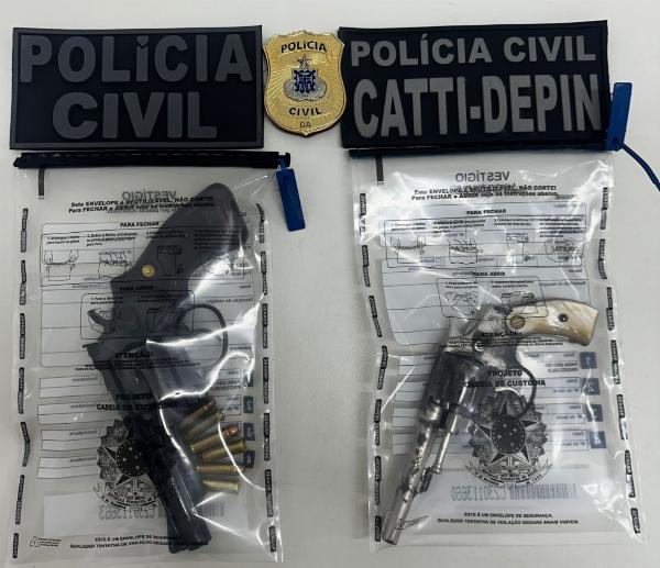 Com autorização, os agentes entraram na residência e apreenderam outro revólver, calibre .32, com numeração suprimida e duas munições intactas.