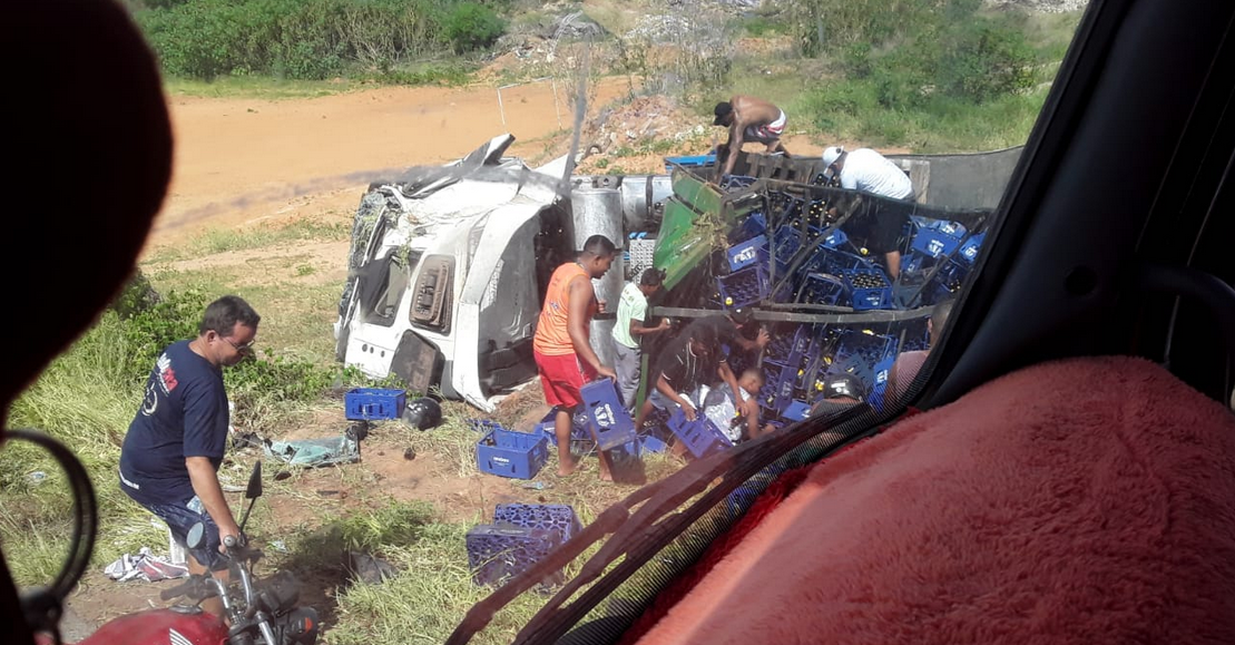 Uma carreata que transportava cerveja pela BR-116, no trecho do município de Tucano, a 85 quilômetros de Serrinha, tombou neste domingo (6). De acordo com informações enviadas por pessoas que passavam pelo local, o veículo foi saqueado.