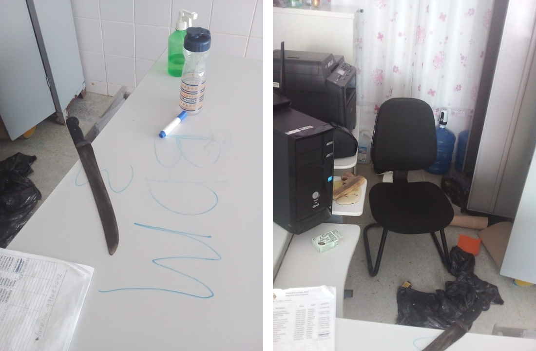 Em um vídeo que circula nas redes sociais, é possível ver os parentes das crianças reunidos no pátio da creche, armários revirados pelas salas, objetos jogados no chão e uma mesa com as iniciais “BDM” escritas junto a um facão, esquecido pelos invasores. A sigla faz alusão à facção Bonde do Maluco.
