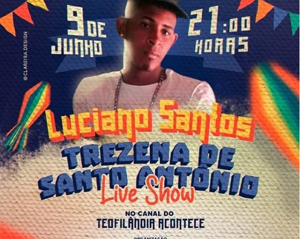 O cantor teofilandense Lukas Lima fará a sua 2ª live em seu canal no YouTube, o show acontecerá amanhã, sábado, 15 de agosto, às 20h00. A transmissão ao vivo contará com a participação do cantor Milsinho Toque Dez, da rainha da Vaquejada de Serrinha, Paula Maressa, e do blogueiro Anderson Ravak.