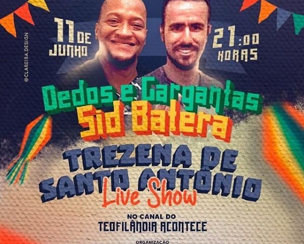 Dando continuidade as lives realizadas pelo site Teofilândia Acontece, que vinham acontecendo antes mesmo das lives da Trezena de Santo Antônio promovidas também pelo T.A, chegou a vez do artista teofilandense João David Forrozeiro, um dos cantores mais pedidos. João se apresenta no dia 27 de junho, sábado, às 19h00, no canal do Teofilândia Acontece no YouTube.