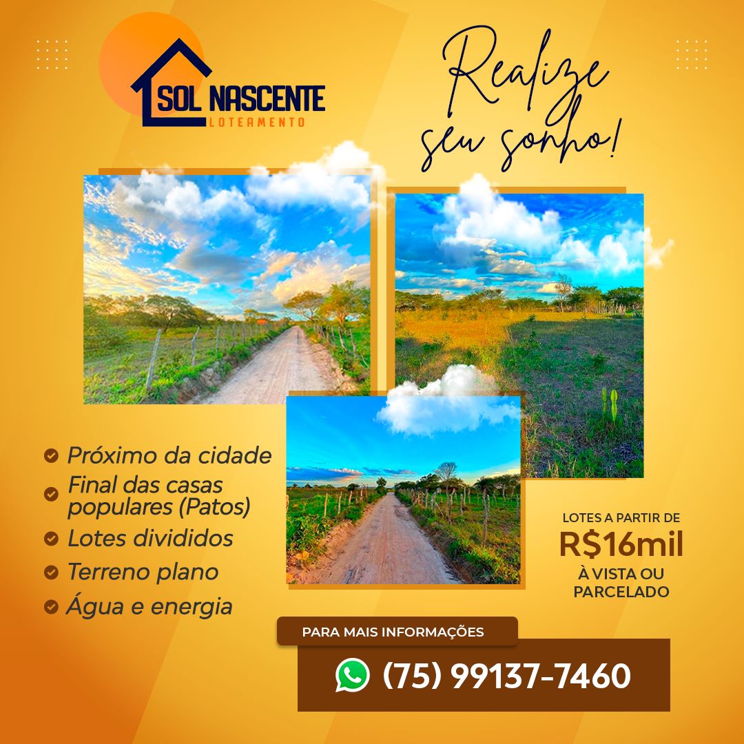 Terrenos planos e preços acessíveis; saiba mais sobre o loteamento Sol Nascente em Teofilândia
