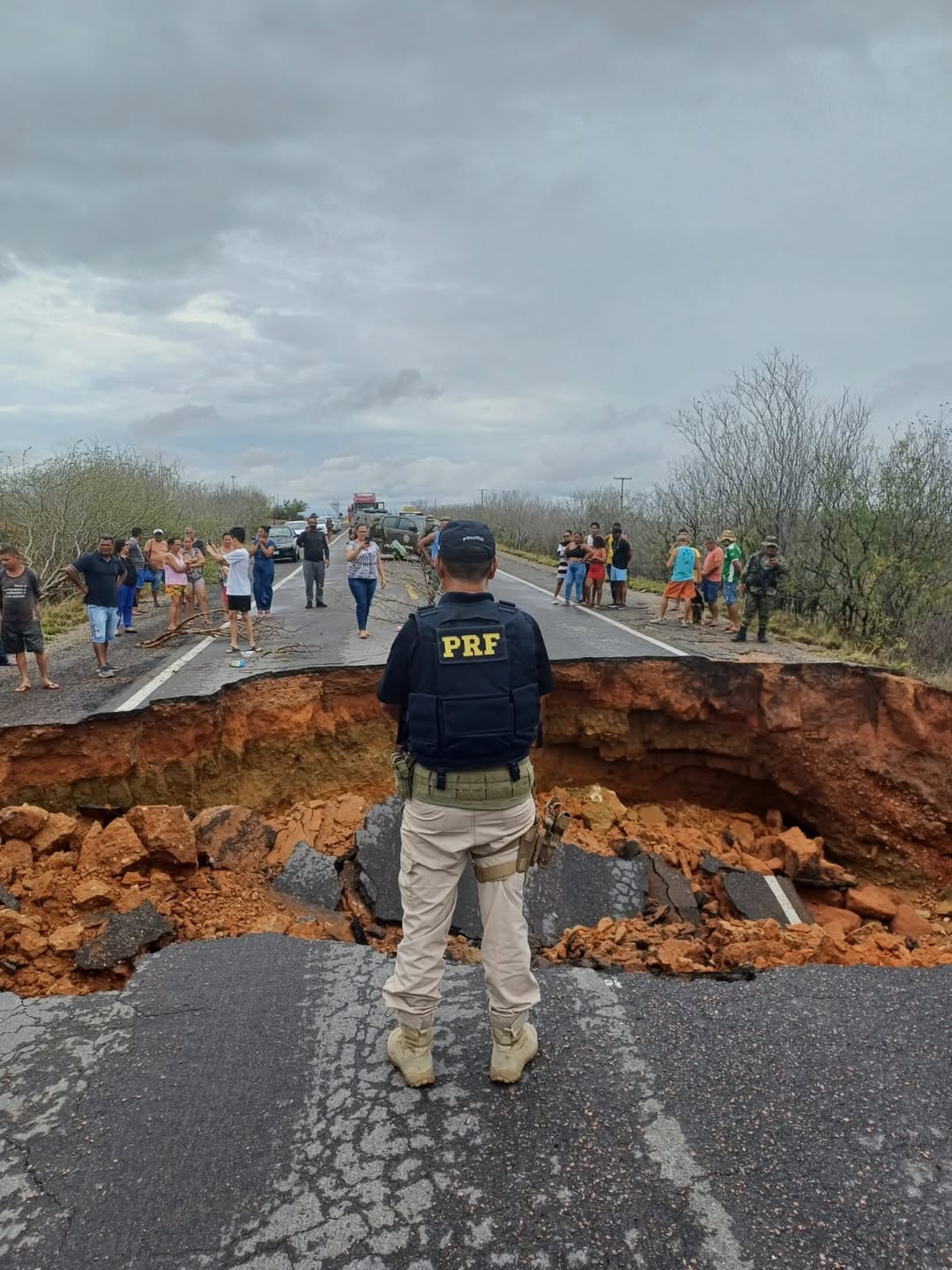 Equipes de atendimento estão no local, e o Departamento Nacional de Infraestrutura de Transportes (DNIT) já foi acionado para realizar as intervenções necessárias e restabelecer o tráfego com segurança.