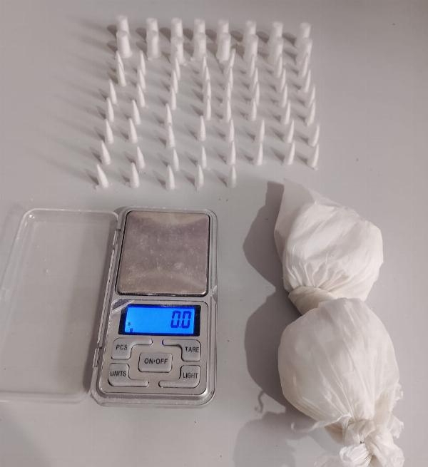 Na revista pessoal, foram encontrados com ele 69 pinos de cocaína fracionados, prontos para venda, aproximadamente 120 gramas da mesma droga a granel e uma balança de precisão.