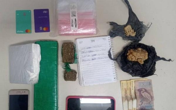 Com o trio, os policiais apreenderam cerca de 500 gramas de cocaína, além de porções de maconha e crack, materiais utilizados para embalagem de entorpecentes, aparelhos celulares e R$ 165 em espécie.