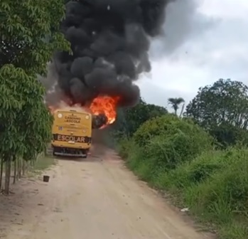 Ônibus escolar de Barrocas pega fogo próximo à localidade de Morrinho