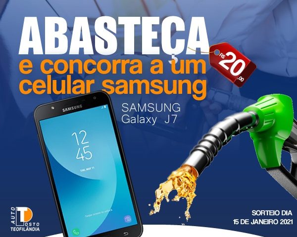 O Auto Posto Teofilândia está realizando uma promoção e é bem simples de participar. Abastecendo seu veículo no valor acima de R$ 20,00, você concorre a um celular Galaxy J7.